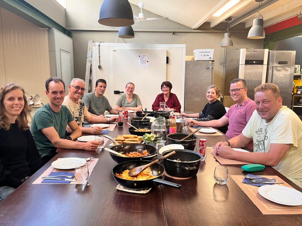 Na het koken gingen we aan tafel. Iedereen schepte op en was benieuwd of de gerechten die dubbel zijn gemaakt ook hetzelfde zouden smaken. Wat bleek? De ene curry is donkerder dan de andere en er was ook een heel klein verschil qua smaak. Hetzelfde gold voor de mihoen. Het ene groepje heeft iets meer ketjap manis in de mihoen gedaan waardoor het gerecht iets donkerder van kleur was. Maar iedereen was het ermee eens, het eten was lekker en ze hebben een hoop geleerd over de Indonesische keuken. De workshop was geslaagd en iedereen ging tevreden naar huis.